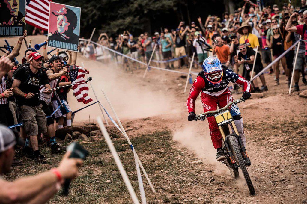 Nimmt man das „G” aus seinem Nachnamen, erkennt man, dass Siegen bereits in seinem Namen steht und so stellt er sich auch an. Die letzte Saison hat der amerikanische Downhill-Rennfahrer am meisten Weltcup-Siege nach Hause getragen und hätte sicherlich als Nummer 1 in der UCI-Weltrangliste abgeschlossen, hätte er an der Weltmeisterschaft mit seinem Sturz nicht einen derartigen Bock geschossen und die WM 2015 auf Rang 74 mit 5 Punkten abgeschlossen. Mit 300 Punkten konnte der frischgebackene Weltmeister Loïc Bruni (siehe dazu unsere vorangegangene Ausgabe 1/2016) auf der UCI-Weltrangliste an Gwin vorbeiziehen und holte sich 2015 damit auch den Weltrangplatz 1 mit 103 Punkten Abstand vor Aaron Gwin.