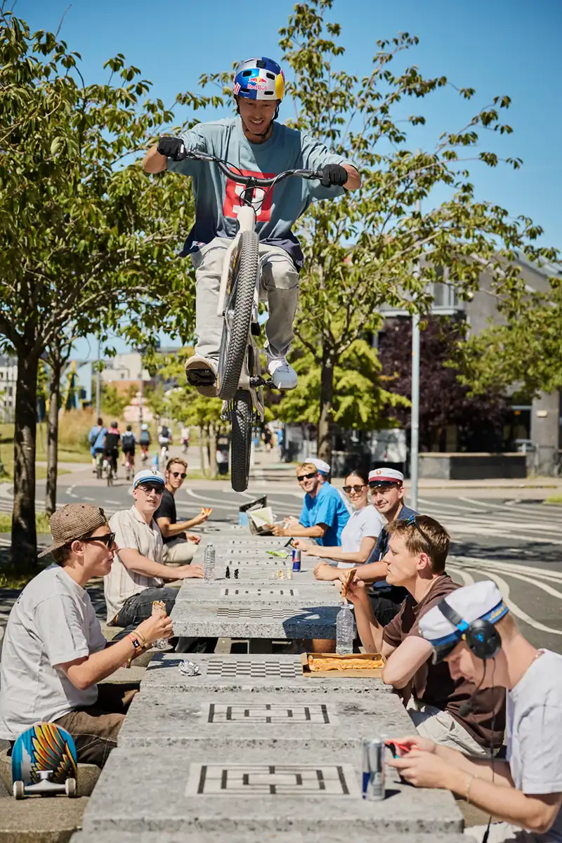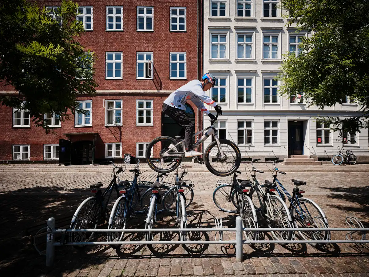A very special kind of city tour can be seen in Tomomi Nishikubo's latest video. In an entertaining mix of travel vlog, Trials action, and behind-the-scenes footage, the Japanese Trials ninja shows the Danish capital at its best, whether through endless wheelies on Copenhagen's bike highways, Trials basketball at Israel Plads, balancing on picnic tables in Amager Strandpark, or jumping from pole to pole in the waters of Nordhavnen.