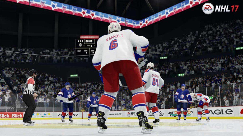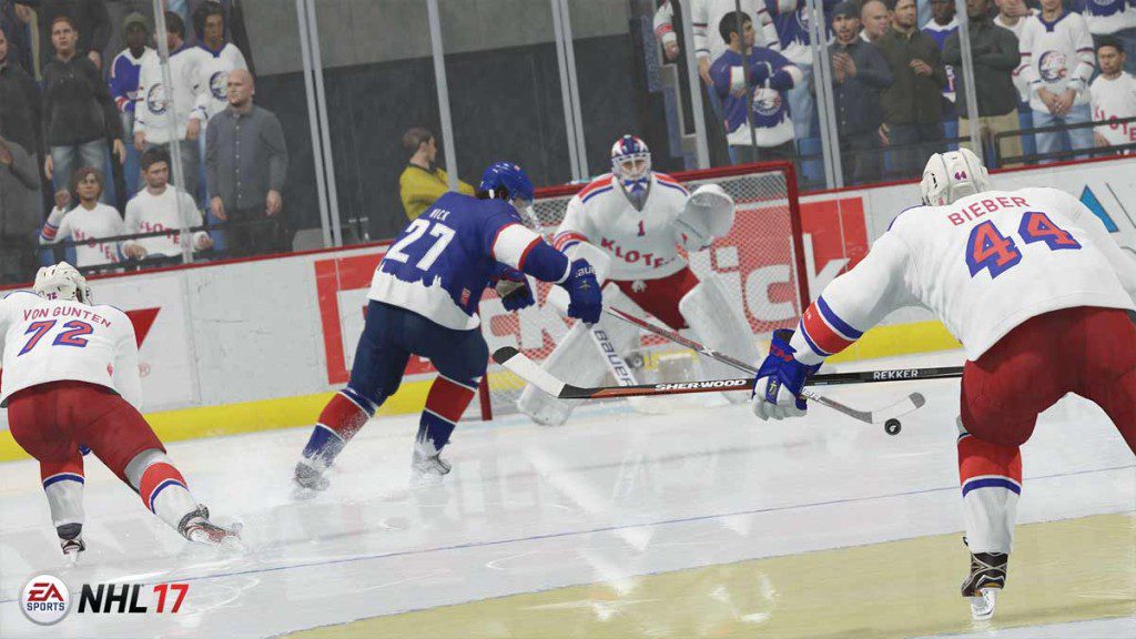 Kurzum das Spiel ist nochmals deutlich besser geworden im Vergleich mit der letztjährigen Version (NHL 16). Realistischer denn je agieren die Spieler auf dem Eis, ihre Bewegungen und Reaktionen sind völlig natürlich und auch das Publikum wirkt, als befände man sich an einem Live-Match. Insgesamt muss präziser gelenkt werden, was erfahrenen NHL Game-Spielern gefallen wird, denn man kann das Gefühl bekommen, als bewegte man sich tatsächlich selbst auf dem Eis. Anfänger werden hier etwas gefordert sein, aber da helfen leichtere Steuerungsmodi weiter, falls man sich überfordert fühlt. Vor allem auf den höheren Schwierigkeitsstufen, wird das Spiel unberechenbar und realitätsgetreu. Jeder, der das Spiel kennt, weiss, dass man in früheren Versionen gewisse Spielzüge machen musste, um quasi garantiert einen Treffer zu erzielen, sei es mit einem Querpass zum Mitspieler oder einem Antäuschen auf die linke Seite und dem anschliessenden Schuss in die rechte Torecke. Auf diese Weise konnte man das Spiel selbst austricksen. Besonders auf den höheren Schwierigkeitsstufen ist dies nicht mehr möglich, was den Gamer mehr fordert. Die Goalies werfen sich stärker in Szene, die Gegner checken deutlich häufiger, ein Tor zu erzielen, braucht nun eindeutig mehr, was das Game insgesamt spannender macht. Gerade die Torhüter sind dank der neuen Reactionary Save Intelligence authentischer, denn sie sind in der Lage vor der Schussabgabe des Gegners dessen Position, den Winkel und die Schusssituation zu berechnen. Die neue Torraumduell-Physik sorgt für harte Zweikämpfe vor dem Tor und noch nie hat man nach einem erzielten Treffer so gejubelt wie in der NHL 17.