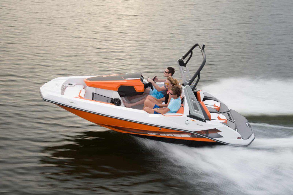 Die amerikanische Werft Scarab ist einer der grössten Hersteller von Jetbooten und liefert mit ingesamt 4 Basismodellen (165, 195, 215, 255) und 44 Modellvarianten eine beeindruckende Palette. Anhänger von Scarab schwärmen davon, dass es sich beim Scarab um eine Verschmelzung eines Jetskis mit einem eleganten Sportboot handelt. Das Manövrierverhalten ist, wie man es von einem Jet erwartet, sehr sportlich. So dreht sich die Scarab vor- wie rückwärts in Vollkreisen mit einem Durchmesser von einer halben Bootslänge. Das Umsteuern von Steuer- nach Backbord wie auch zurück erfolgt jeweils innerhalb von zwei Sekunden. Die sportlichen Flitzer machen auch ordentlichen Krach, weshalb Scarab Jetboote eher ein jüngeres Zielpublikum anspricht. Fun und Action stehen hier glasklar im Vordergrund.Wer nun mehr wissen will, sollte sich beim Importeur für die Schweiz und Liechtenstein informieren und eine Probefahrt ins Auge fassen. Alle Scarab Jetboote sind selbstredend für die Schweiz typengenehmigt.