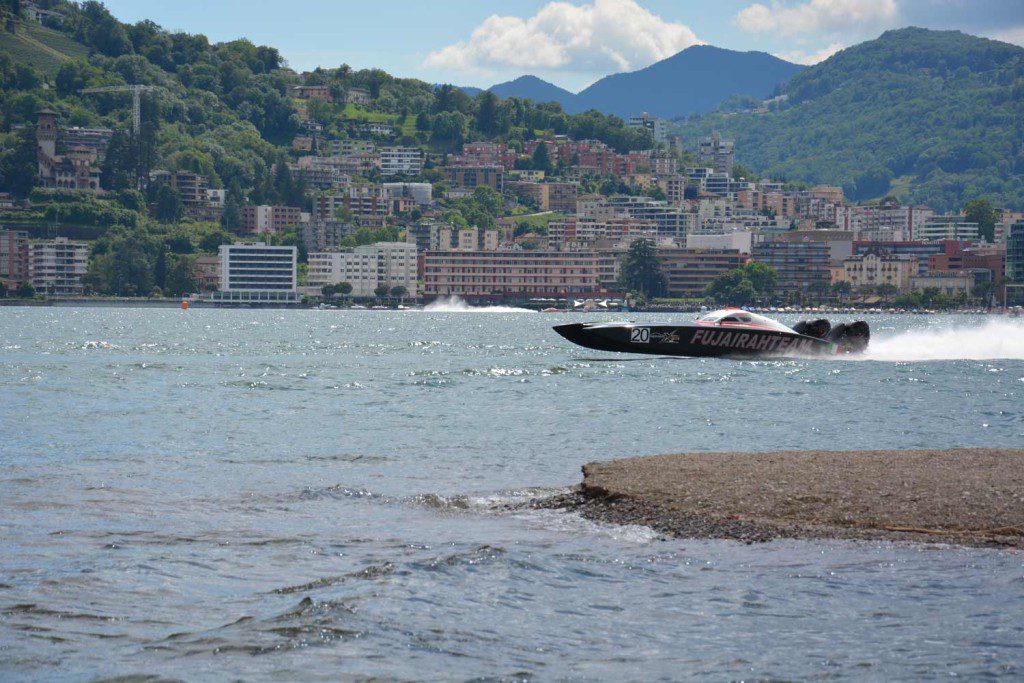 Die ersten Boote zeigten sich eine gute Viertelstunde vor dem Rennen im Wasser, Motoren heulten auf, die Teams drückten erstmals aufs Pedal, um zu schauen, ob ihr Speedboat auch funktionierte und die Power aufs Wasser brachte. Um 15.30 Uhr ging es dann los, dabei bewegten sich die Boote zuerst vom einen Ufer ans andere und es schien von aussen, als würde der Rundkurs erst einmal abgefahren. Leider gab es keine Karte des Kurses und auch ein Speaker fehlte, der das Rennen erklärte oder über den Stand des Rennens informierte, ein Manko, dass man beim nächsten Rennen in einem Jahr ändern sollte. Doch als die Motoren dröhnten und die Boote immer schneller wurden, war jedem klar, nun ist das Rennen gestartet. Von Anfang an konnte sich dabei das Team Victory nach vorne absetzen, dicht gefolgt von den Teams Abu Dhabi, Gold Coast und Australia. Mit einem mächtigen Dröhnen schossen die mächtigen Geschosse übers Wasser und an den Zuschauern vorbei, für Spektakel war nun vollends gesorgt. Leider war es vom Ufer nur schwer möglich, die jeweilige Position der einzelnen Teams genau mitzuverfolgen, doch Victory war immer der Erste bei der Zieldurchfahrt. Das Feld wurde mehr und mehr in die Länge gezogen. Während die führenden Teams am weit gegenüberliegenden Ufer vorbeirasten, schossen die nachfolgenden Teams erst nach und nach am Ziel vorbei. Da sich diese Abfolge immer wieder von Neuem wiederholte, das Spektakel dasselbe blieb, und kein Speaker übers aktuelle Renngeschehen informierte und damit die Zuschauer anheizte, lichtete sich das Feld der Zuschauer am Ufer des Luganersees mehr und mehr, da das erste Spektakel wohl bei vielen bereits verflogen war. Wir jedoch genossen jede weitere Sekunde und freuten uns, als wir die Zieldurchfahrt des Siegerteams Victory nach gut einer Stunde erleben durften. Die 17 Runden hatte das Team mit einer Durchschnittsgeschwindigkeit von fast 154 km/h hinter sich gebracht. Sagenhaft! Kurz nach Ende des Rennens setzte leider ein massiver Regenschauer ein, der viele Zuschauer dazu veranlasste, dass Eventgelände fluchtartig zu verlassen.